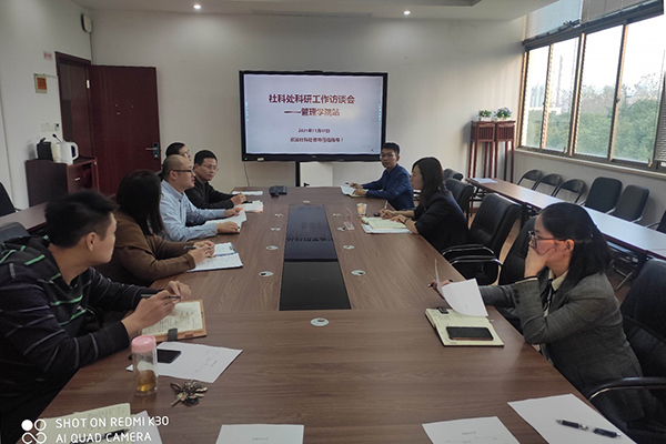 11月2日下午,社科处处长杨丽来到管理学院深入调研科研工作,管理学院党总支副书记宋瑞超,副院长郑爱翔、瞿孙平,及部分科研骨干参加会议。