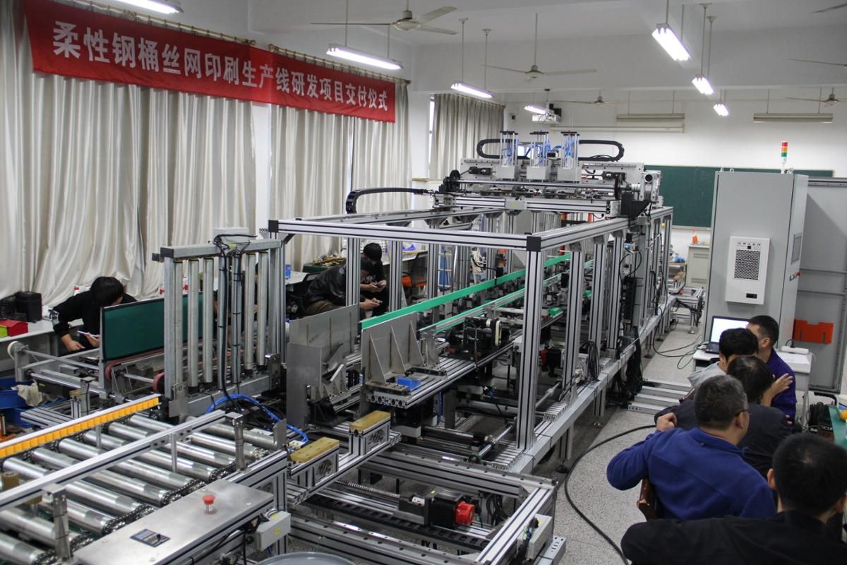 柔性钢桶丝网印刷生产线成功研发,是机械工程学院进一步促进产教融合新模式,最大程度发挥高校科研力量和企业创新主体协同效应的一个典型案例。项目的合作研发,在为企业解决钢桶丝网技术难题同时,教师专业技术有了较大提升,参与的学生动手能力得到较大提高,实现多方共赢。该项目研发总金额120万,标志着机械工程学院具备完全自主开发百万级项目的能力。