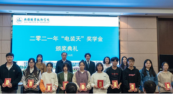 10月19日下午,物联网技术学院在国际交流中心二楼报告厅举行2021年度“电装天”奖学金颁奖仪式。电装天电子(无锡)有限公司总经理中嶋研,物联网学院党总支书记曹建峰、副书记徐锋,公司、学院相关负责人,以及44名获奖学生和部分观摩学生参加活动。
