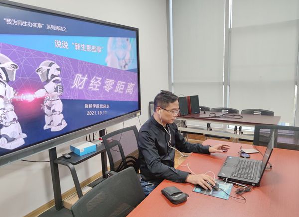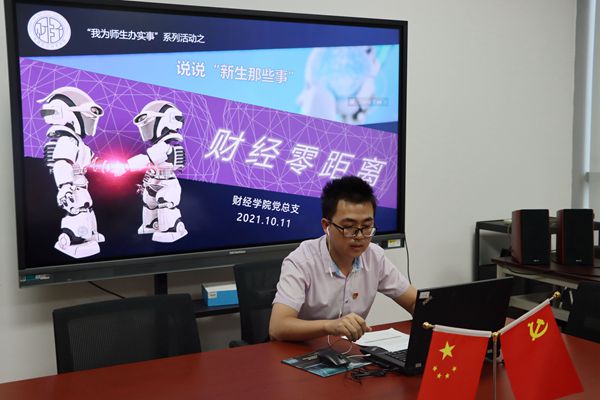 为进一步贯彻落实学校党委关于深入开展“我为师生办实事”党史学习教育活动要求,为财经学院2021级新生办实事、解难题。10月11日下午,财经学院党总支组织教工党员代表开展新生“财经零距离”线上主题党日活动,参加本次活动的有财经学院辅导员、各系部党员代表,以及百余名线上新生。