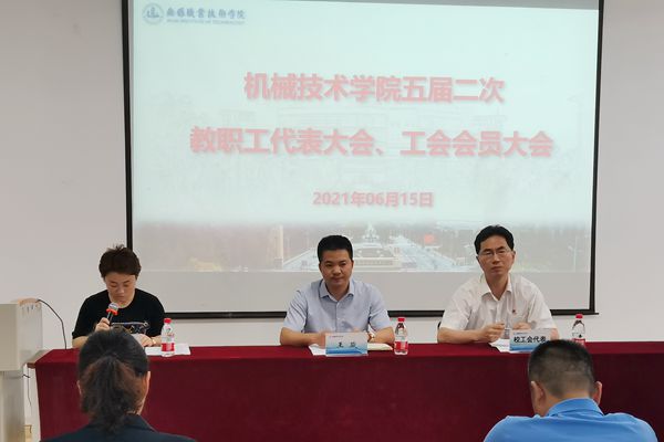 6月15日,机械技术学院第五届第二次教代会、工会会员大会在工业中心A机械技术学院会议室召开,会议由机械技术学院分工会主席宋佳娜主持。