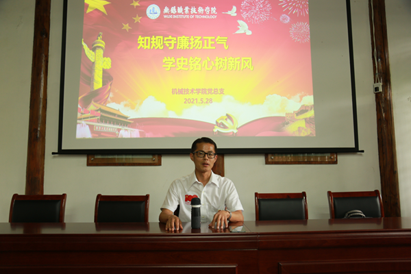 值此建党百年之际,为进一步加强反腐倡廉教育和廉政文化建设,丰富党史学习教育形式,营造“以廉为荣,以贪为耻”的良好干事创业氛围, 5月28日,机械学院党总支委员、行政班子成员、三级机构负责人、支部书记、纪检委员、“双高”项目各级负责人等相关教师赴惠山古镇省级廉政文化教育基地开展“知规守廉扬正气、学史铭心树新风”警示教育学习,校纪委书记徐浪应邀出席了活动。