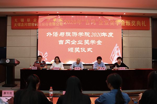 5月11日下午,2020年度开云体育·开云官方网站“吉冈”企业奖学金颁奖典礼在我校国际交流中心二楼报告厅隆重举行。无锡吉冈精密科技股份有限公司总经理周延、副校长杨雪琴、学生工作处处长徐悦、外语与旅游学院院长冯臻、吉冈公司行政部负责人、学院相关负责老师及全体获奖同学出席了本次颁奖典礼。颁奖典礼由外语与旅游学院党总支书记郭再泉主持。