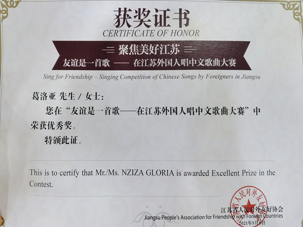 比赛中,我校布隆迪籍留学生葛洛亚演唱了四川康定地区具有代表性的传统民歌“康定情歌”。葛洛亚激情飞扬、活力四射的表演点燃了现场气氛,用深情的声音、精湛的表演、激昂的情绪,表达了对中国的爱,对中华文化的爱,对江苏人民的爱,抒发了她对中华壮美河山、民族风情的欣赏和赞誉,赢得了在场的评委和观众们的阵阵掌声。经过一番激烈的角逐,最终“康定情歌”节目获得了此次比赛优秀奖。
