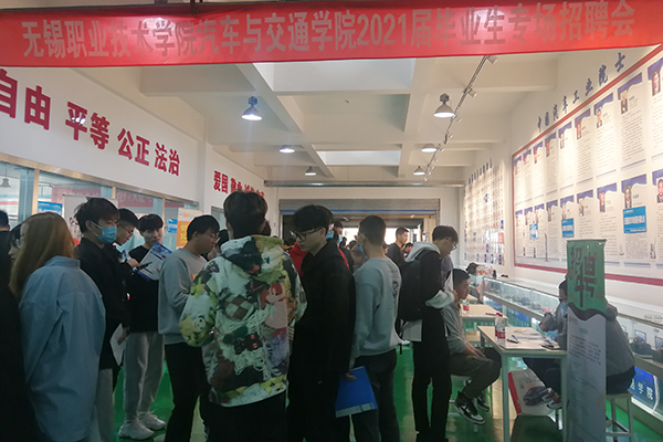 11月17日下午,汽车与交通学院2021届毕业生专场招聘会在工业中心B一楼实训大厅举办,来自无锡、苏州、常州、上海等地共35家优质企业进场招贤纳士,为2021届汽车类专业480余名应届毕业生提供就业岗位共计864个。分院负责人,毕业年级辅导员、班主任等到场助推学生就业工作。