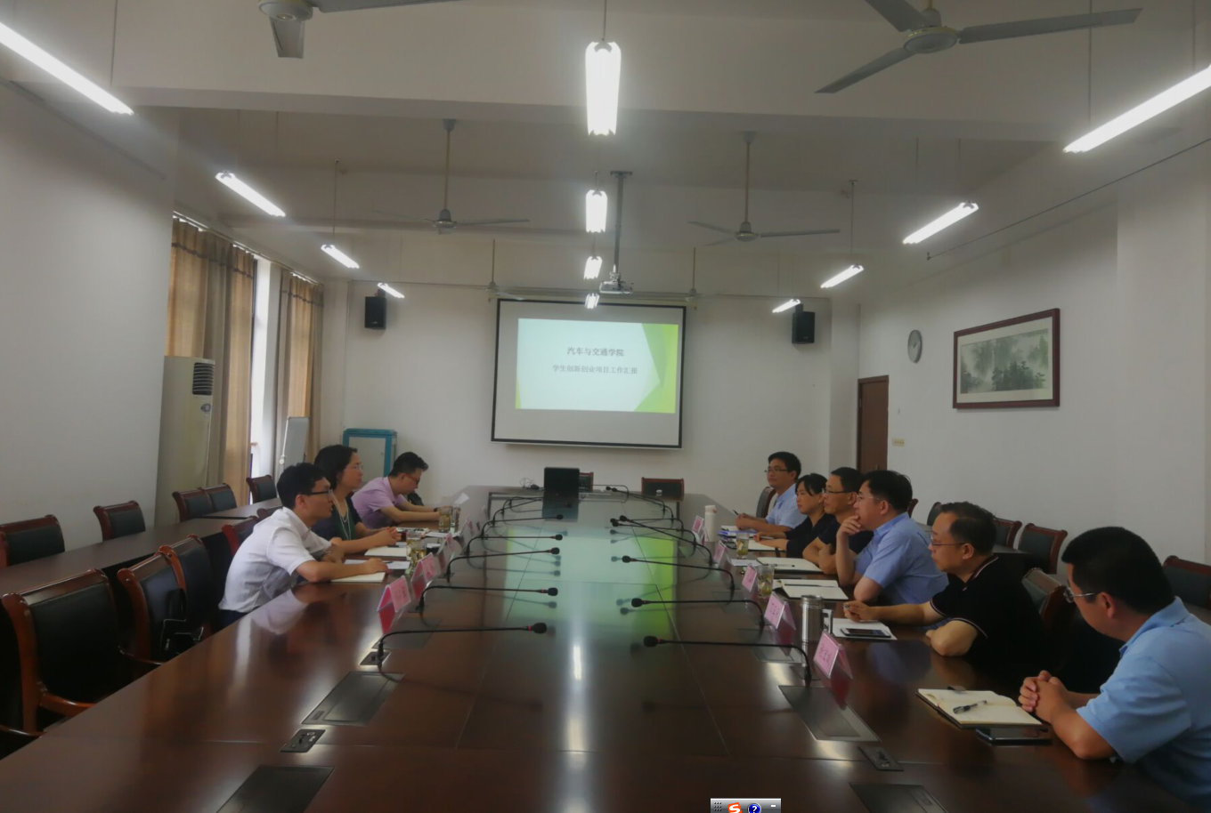 分院邹晔副院长对汽车学院校级在“挑战杯”参赛项目、校级大学生创新创业训练参赛项目、“互联网+”大学生创新创业参与项目、拟重点培育的项目情况进行了汇报。党总支书记郭再泉介绍了分院在开展学生创新创业项目中碰到的如大学生创新创业训练管理体系还不健全,经费投入不足、老师、学生参与的积极性还不高、创新创业团队的组建比较单一等困难及问题,并向调研组汇报了下一阶段的工作思路,有关部门负责人也就学生创新创业工作进行了交流和探讨,对于汽车学院学生创新创业培育中遇到的问题,给出了解决方案和好的建议。