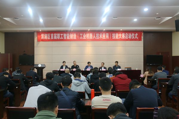 11月3日,滨湖区首届职工智能制造(工业机器人技术应用)技能大赛启动仪式在我校国际交流中心二楼报告厅举行。滨湖区总工会党组书记、工会副主席黄鸿、工会副主席张晓阳、组织生产部部长许建秀、我校继续教育学院院长崔平教授、大赛裁判长、控制技术学院姚晓宁副教授以及来自滨湖区七个街道的参赛队的领队和70名参赛选手参加了启动仪式。启动仪式由滨湖区总工会副主席张晓阳主持。