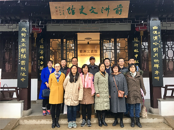此行有两个主要活动:一是前洲文史馆参观,二是前洲40年发展历程及经验介绍交流会。前洲文史馆是无锡惠山区党性教育示范基地,文史馆的展览由前洲概况、古代前洲、近代前洲、现代前洲四大版块组成,在解说员的带领下,大家通过翔实丰富的图文资料了解了前洲经济建设和文化发展历史,尤其是前洲从农到工、从穷到富,从农村到城镇的改革开放的发展历程,以及创造的“第一个亿元村”、“第一个亿元乡”的光辉成就。参观结束后,马克思主义学院邀请前洲街道人大工委主任沈宏一起座谈交流。在座谈中,沈主任向大家详细介绍:自改革开放以来,在上世纪八九十年代,前洲人充分利用注重水利农机的地域经济特点,发扬“四千四万”的实干精神引领前洲乡镇企业异军突起,综合实力勇夺华夏之冠;在九十年代末二十一世纪初,经济发展遇到瓶颈时,通过体制机制改革,进一步激发经济活力,再一次取得骄人成绩;如今,面对“两个一百年”奋斗目标及经济结构转型升级的要求,前洲人将发扬担当精神,凝敬业恒心,聚兴业合力,再创发展辉煌。在交流中,沈主任还特别强调,在前洲经济改革与发展中,一个重要举措与优势是当地非常注重教育事业与文化传承,良好的文化氛围与人才基础是前洲发展的重要条件。