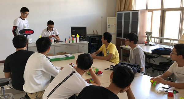 幻指极限魔方社是控制技术学院9月份新成立的学生社团,在控制技术学院分团委的领导下,组织开展各类魔方兴趣教学,交流,比赛活动。为了更好地迎接百团大战,增进社员间的魔方技艺交流,魔方社成员们在国庆期间举办了建社以来的第一次魔方交流活动。活动邀请了亚洲斜转项目记录保持者杨宸畅选手到场为大家做了指法展示;无锡二阶单次最快记录保持者吴洇涛为大家做金字塔魔方还原展示。社长和无锡赛主办成员为社员讲解了还原方法的要点以及如何更好地教授他人的技巧,包括七步还原法的要点、相关阶段的指法练习等。这次活动也让社员们互相增进了解,方便后期的教学与提速。
