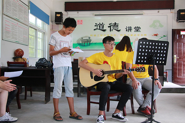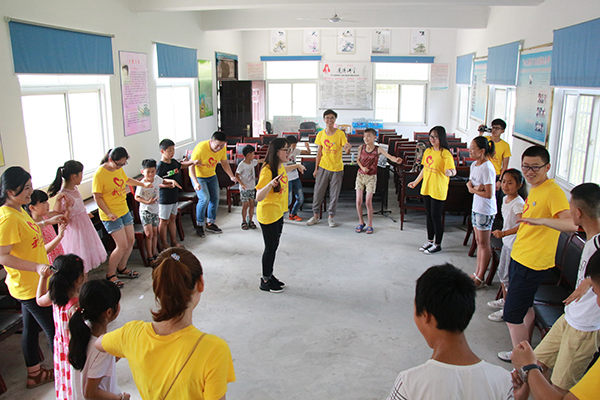 志愿者们在当地政府的指导下,克服酷暑与方言差异,积极奔走,积极配合政府的扶贫计划,认真宣传国家扶贫政策。同时寻访招募留守儿童,开展支教活动,将银屏镇箕山行政村作为重点服务对象,为那里的留守儿童开设了语文、数学、英语、美术、体育、书法等八门课程。每一天,志愿者们用自己的细心、耐心向渴望知识的孩子们传授知识,并用募集来的300多本图书,建立起“蒲公英”阅读角,开拓孩子们的视野,带他们享受阅读的乐趣。