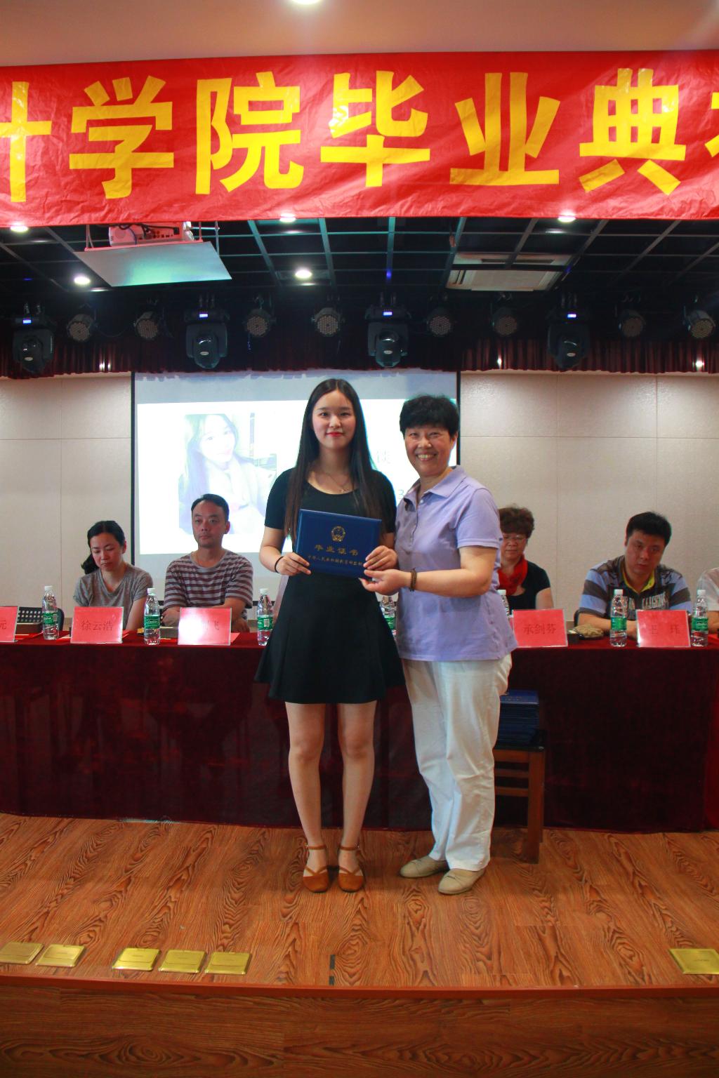 潘祖平院长介绍了2016届毕业生情况,承剑芬副院长宣读了分院优秀毕业生的表彰决定,到场嘉宾为获表彰同学颁发荣誉证书,勉励他们步入社会实现更大的自我价值。在最激动人心毕业证颁发环节,现场大屏幕一一呈现每位同学的照片,同学们依次从潘祖平院长手中接过毕业证书并合影留念。
