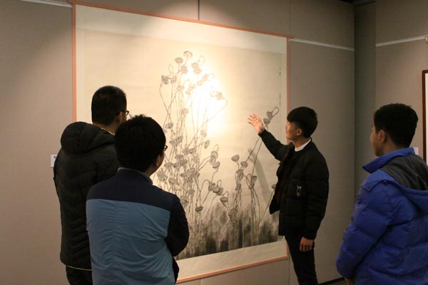 此次画展展出了吴锦川先生近期以“莲”为主题的近200幅作品。吴先生的作品有着独特的个性,以及鲜明的水墨特征。“涟韵禅心”、“荷塘月色”,一枝一叶笔墨简古,以残墨枯笔渲染出秋荷残莲、独对西风的凄冷意境,更表达出作者“以莲明志,在喧嚣红尘中,孜孜作画,享受着自我为理想前行的孤独”,每幅作品都蕴含着吴先生对生命的感悟与人生的思考。画展上,我校学生认真的欣赏吴先生的作品,常常在画作前驻足良久,并在先生作品前拍照留念。