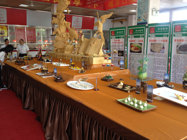 美食节活动期间,形式多样、内容丰富。既有餐饮文化介绍,又有菜品展示,更有多种优惠措施。在餐厅中央设立一个大展台,展示各种大型雕刻作品、手工点心,花样繁多、寓意美好,引得师生啧啧称赞;同时设立了各类点心免费试吃区,吸引大家细细品尝;多个窗口推出新品大锅菜,并特价销售,长长的排队队伍显示着菜品的诱惑力。