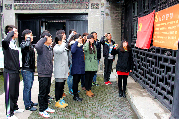 新四军黄桥战役纪念馆位于江苏省泰兴市黄桥镇,是全国著名的爱国主义教育基地。本次参观活动由控制学院党总支苗勇书记带队,关工委吴宜平、朱献清、张格物、万光春、马榴娣等5位老师和学工办全体辅导员也一同参加学习。在纪念馆内,通过聆听讲解员的详细介绍,仔细观看当年决战中使用和缴获的各式武器、阅读丰富翔实的资料,大家仿佛又回到了当年荡气回肠的战斗之中。黄桥战役中新四军将士所表现出来的那种不畏强敌、不怕牺牲、敢打敢拼、勇夺胜利的大无畏的革命精神,让大家感动不已。参观结束后全体学生党员在纪念馆内重温入党誓词并合影留念。