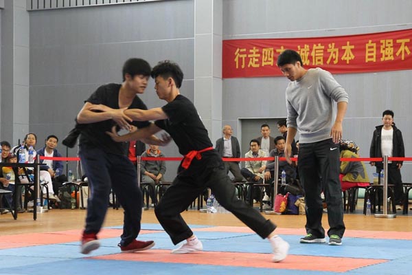 上午,苏南太极推手交流会在我校举行,来自南通、苏州、无锡等地太极推手队冒着蒙蒙细雨来到我校,切磋技艺、交流经验。校工会主席、体育部直属党支部书记常华等出席交流会。