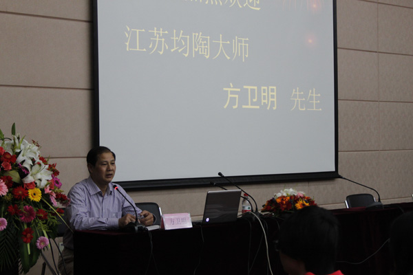 6月7日下午,太湖校区国际交流中心二楼报告厅里坐满了对陶瓷艺术感兴趣的的师生,江苏省陶瓷艺术大师方卫明来校开设主题为“陶都宜兴优秀古老的均陶艺术”的讲座。