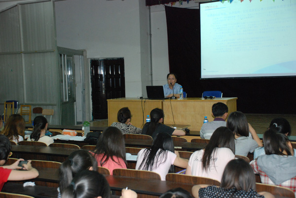 5月29日下午,我校杰出校友唐荣华应邀到中桥校区作专题讲座,与同学们交流“如何成为一名优秀的财会人员”。经济管理学院财务管理、会计专业2010级所有在校生及其他专业近300人聆听了报告。