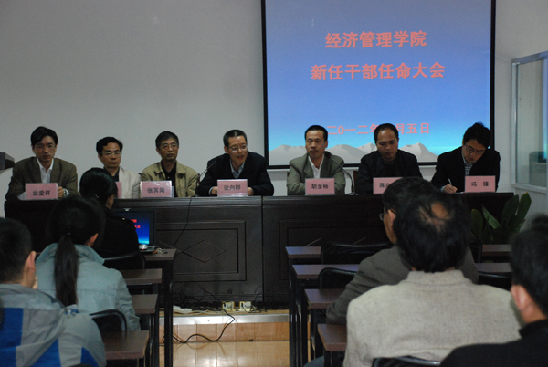 会上,校纪委张其南同志宣读了党委有关经管学院领导干部的任命名单,接着经管学院新任命的各位领导在会上分别作了表态发言。原经管学院院长助理蒋兆军在会上作了调动感言。