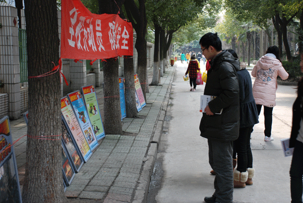 3月10日,经管学院在学生宿舍三号楼门口举办题为“全校齐动员,防火保安全”图片展览,吸引了广大学生前来观看。