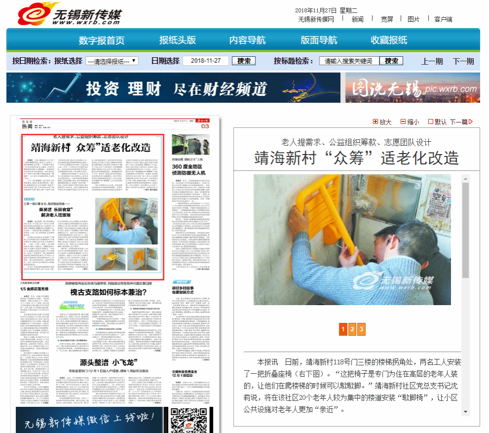 【无锡日报】老人提需求、公益组织筹款、志愿团队设计 靖海新村“众筹”适老化改造