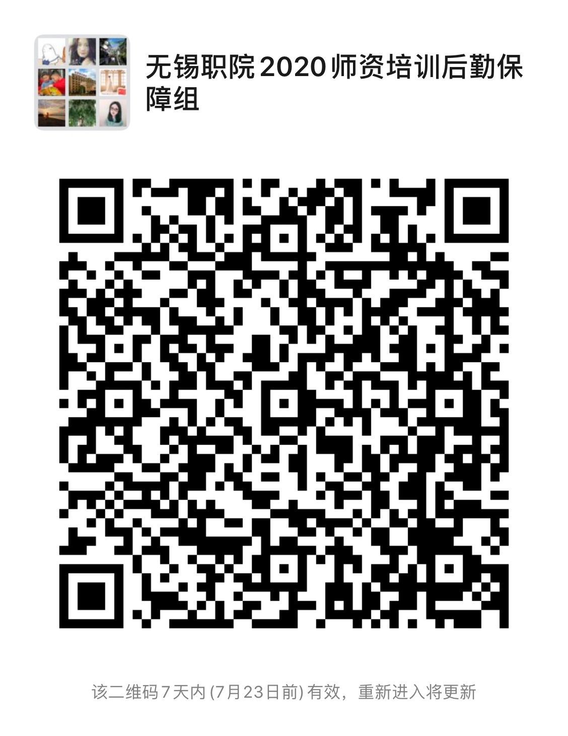 8、为方便后期工作开展,请各项目培务人员扫码加入“无锡职院2020师资培训后勤保障组”微信群。