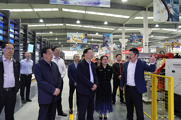 高体健一行走访参观了我校智能制造工程中心、机械制造工程中心等场所。考察期间,双方围绕“如何提升现代职业教育质量,建设高水平职业院校和高水平专业,以及建设高水平、专业化、开放性产教融合实训基地”等主题进行了交流,并与相关教师和学生进行交谈,了解学校的办学环境,以及专业课教学、产教融合、校企合作等情况。