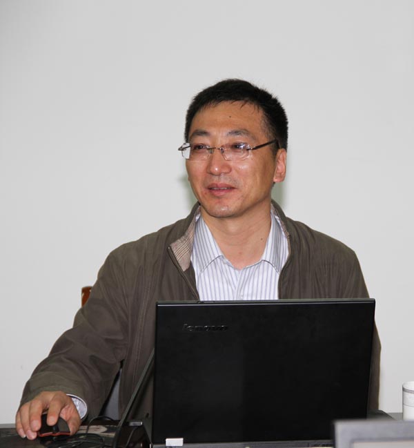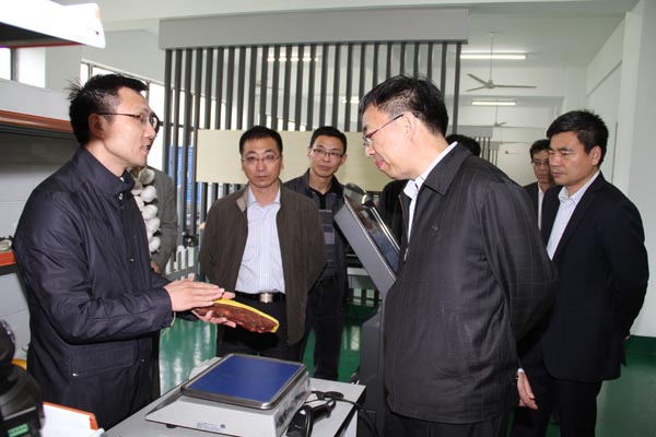 葛道凯司长(中)在机械技术中心与我校教师交流