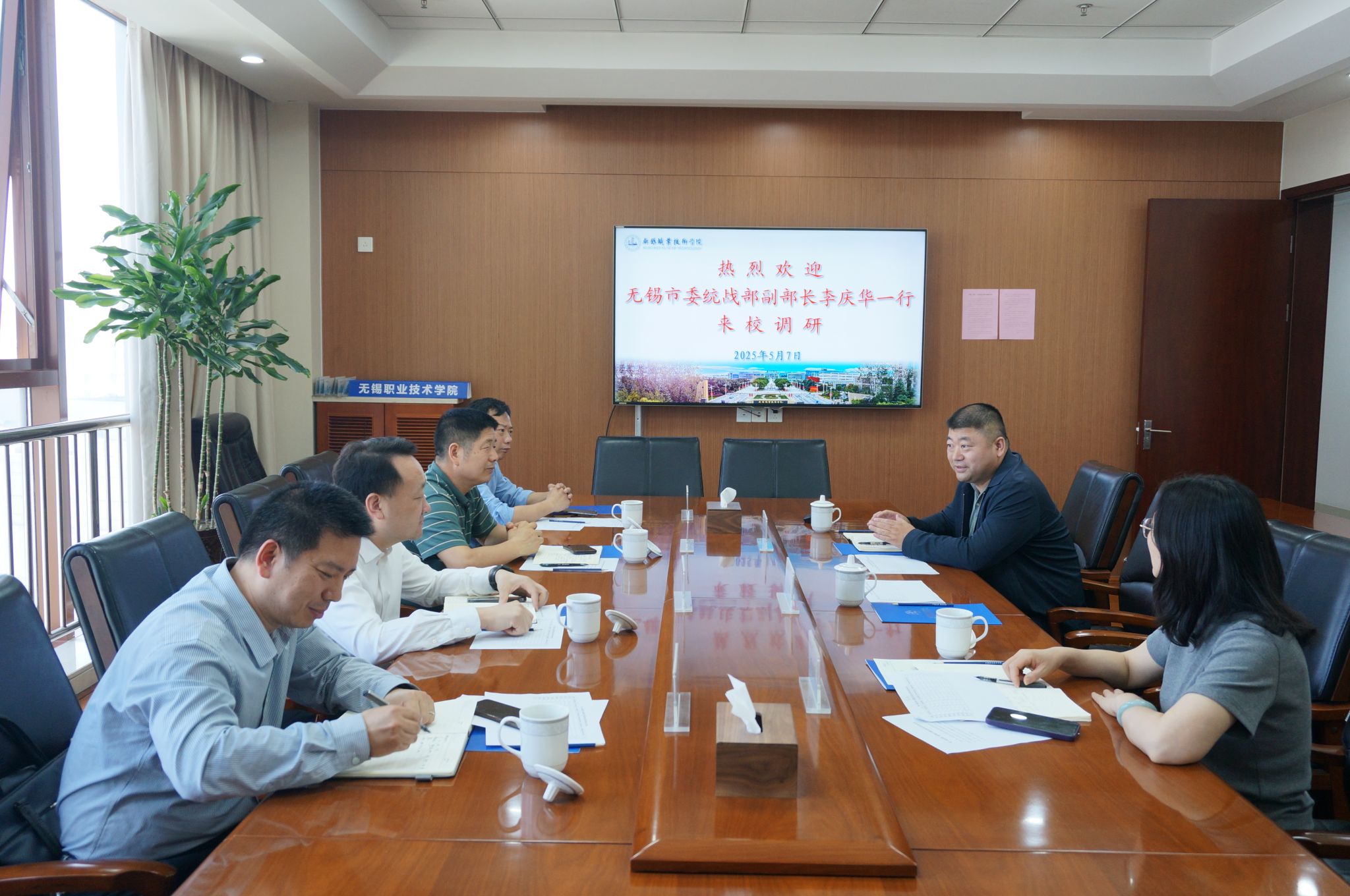 5月7日,无锡市委统战部副部长、市中华职教社副主任李庆华,无锡市中华职教社秘书长李天鹏一行4人来我校调研职业教育工作。我校党委副书记杨雪琴参加座谈交流。