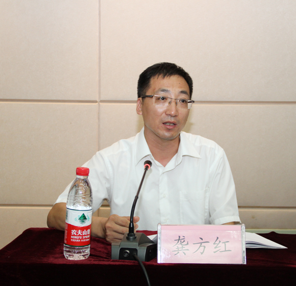 省委组织部干部五处副处长陈玉明首先宣布了省委关于龚方红、戴勇同志的任免决定,任命龚方红同志为我院院长、戴勇同志为正院级调研员,免去戴勇同志的院长职务;省委教育工委组织处处长眭平宣读了省委教育工委关于调整我院领导班子的文件,任命龚方红同志为我院党委副书记,华坚、冯渊、顾京同志为副院长,周桂瑾同志为副院长(试用期一年),免去戴勇同志的党委副书记职务,免去曹建林同志的副院长、党委委员职务。省委教育工委副书记潘漫作重要讲话,新院长龚方红、老院长戴勇、党委书记朱爱胜先后讲话。