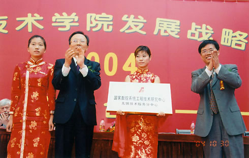 2004 年 10 月 30 日,原省教育厅副厅长周稽裘(左二)参加我院发展战略研讨会情景。