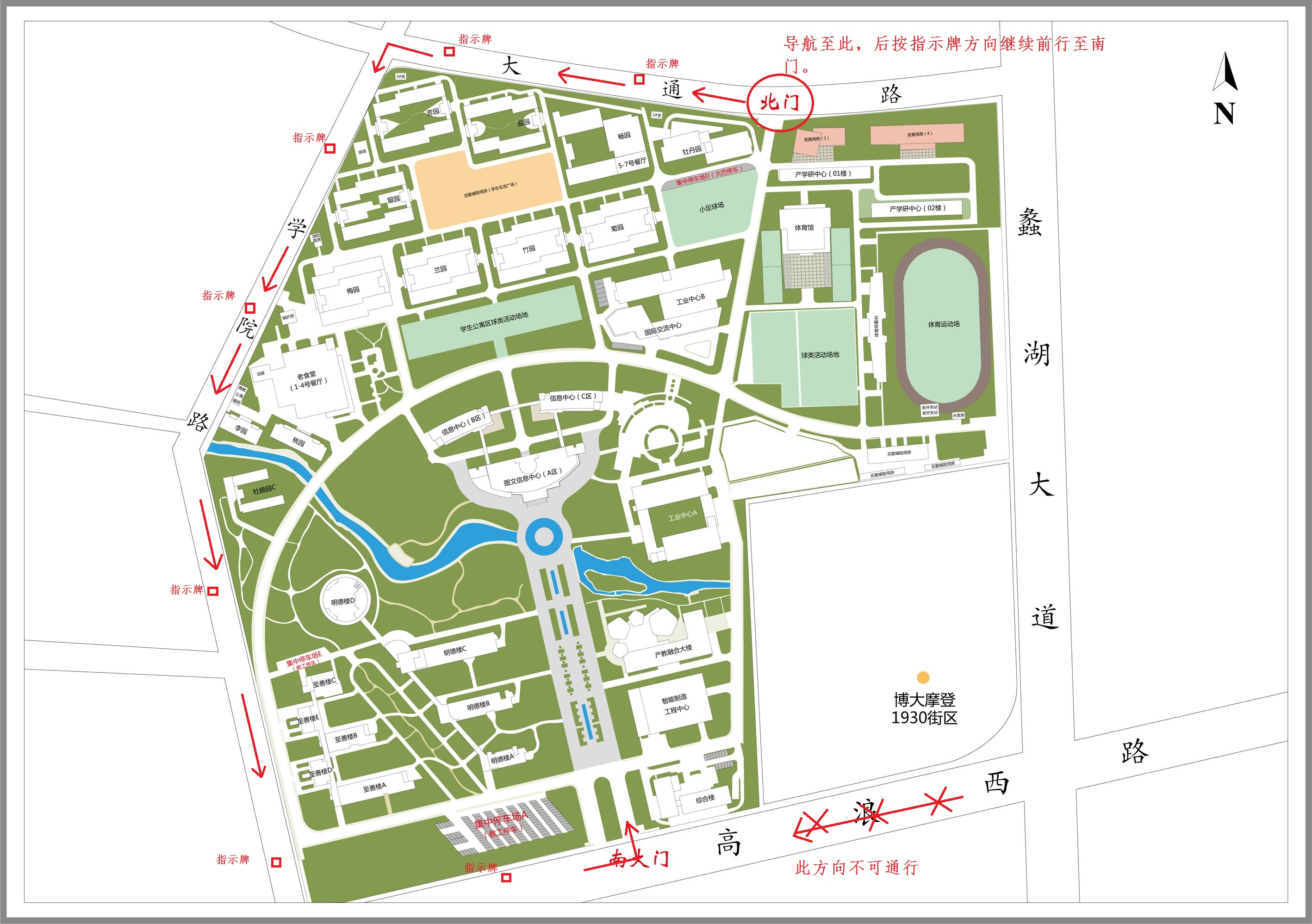 7.驾乘机动车前来参加考核的考生可先导航到学校北门,然后按指示牌驾乘机动车至南门后进校(学校南门在市政施工,直接导航到学校南门导航路线有偏差);